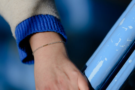 Seit ich die Ohrringe ÉTOILE gesehen habe, bin ich verknallt in Femelle Anouks wunderschöne Funkelklunker. Ich habe sogar eine Sonderanfertigung für mich machen lassen, weil die meisten Sachen eher für Frauen sind: Armband "Cool boy". So cool!